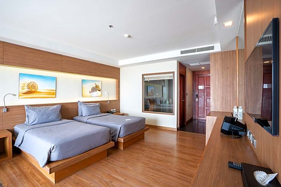Deluxe sea view is 506 square feet and includes either a double bed 131-150 width or 2 single beds 80-130 width plus balcony, extra beds on demand, cable tv, hairdryer, tea and coffee making facilities , and bathrobes and is Wheelchair-accessible.